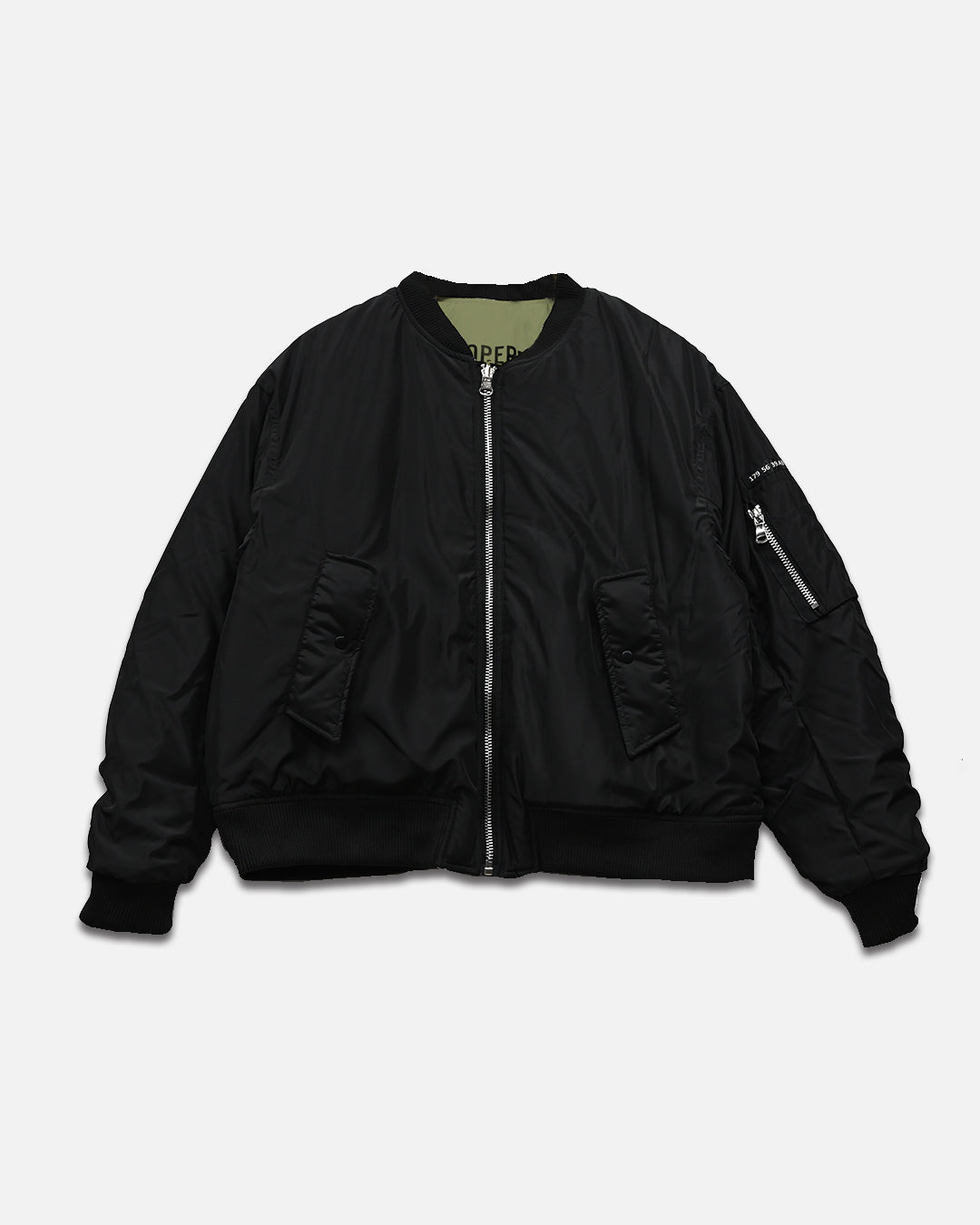 This Bomber Jacket is an oversized reversible jacket in available red, green and white interior. Featuring a sleeve pocket detail,...