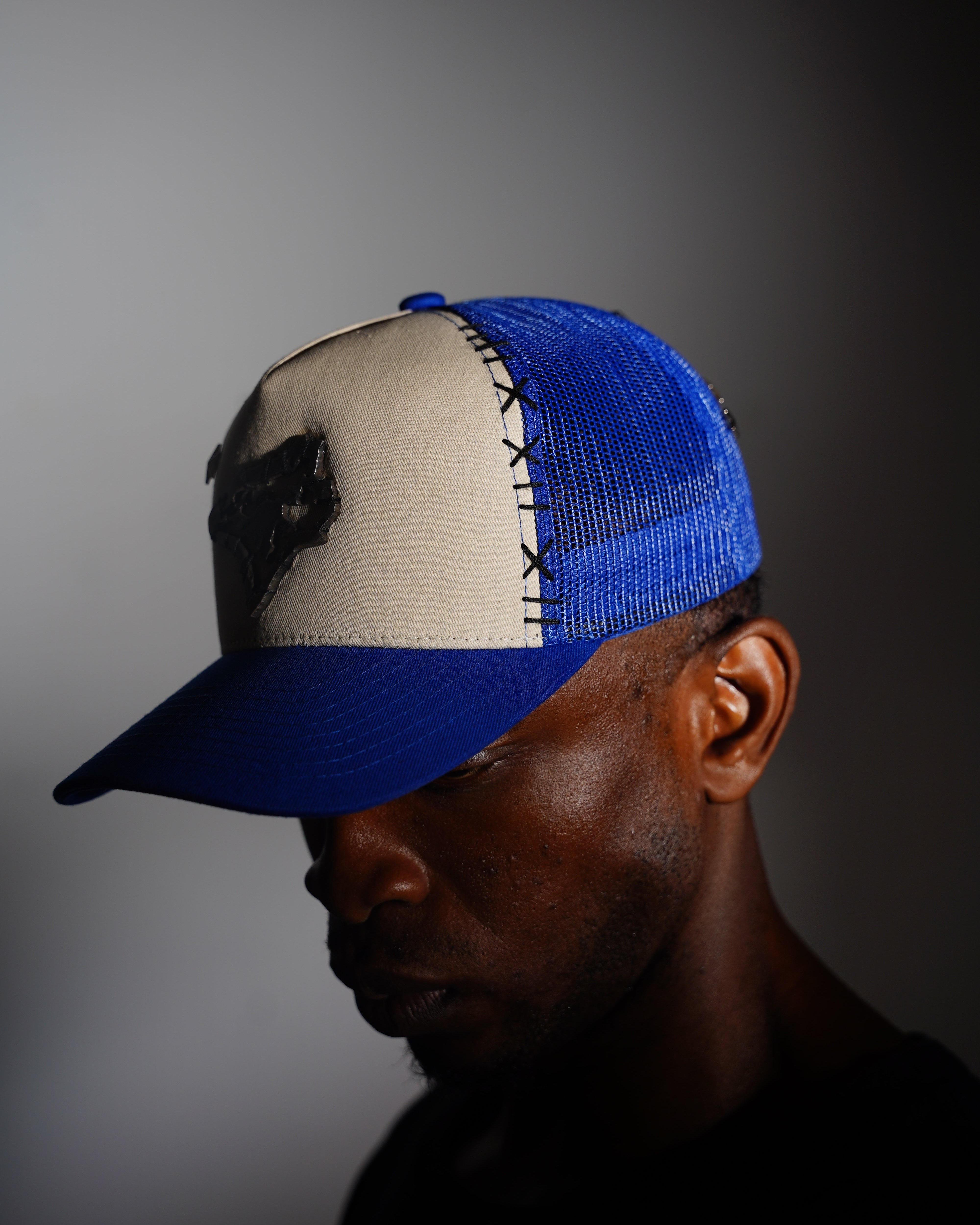 A cap built with scars and steel, designed to outlast the ordinary. One-of-one.