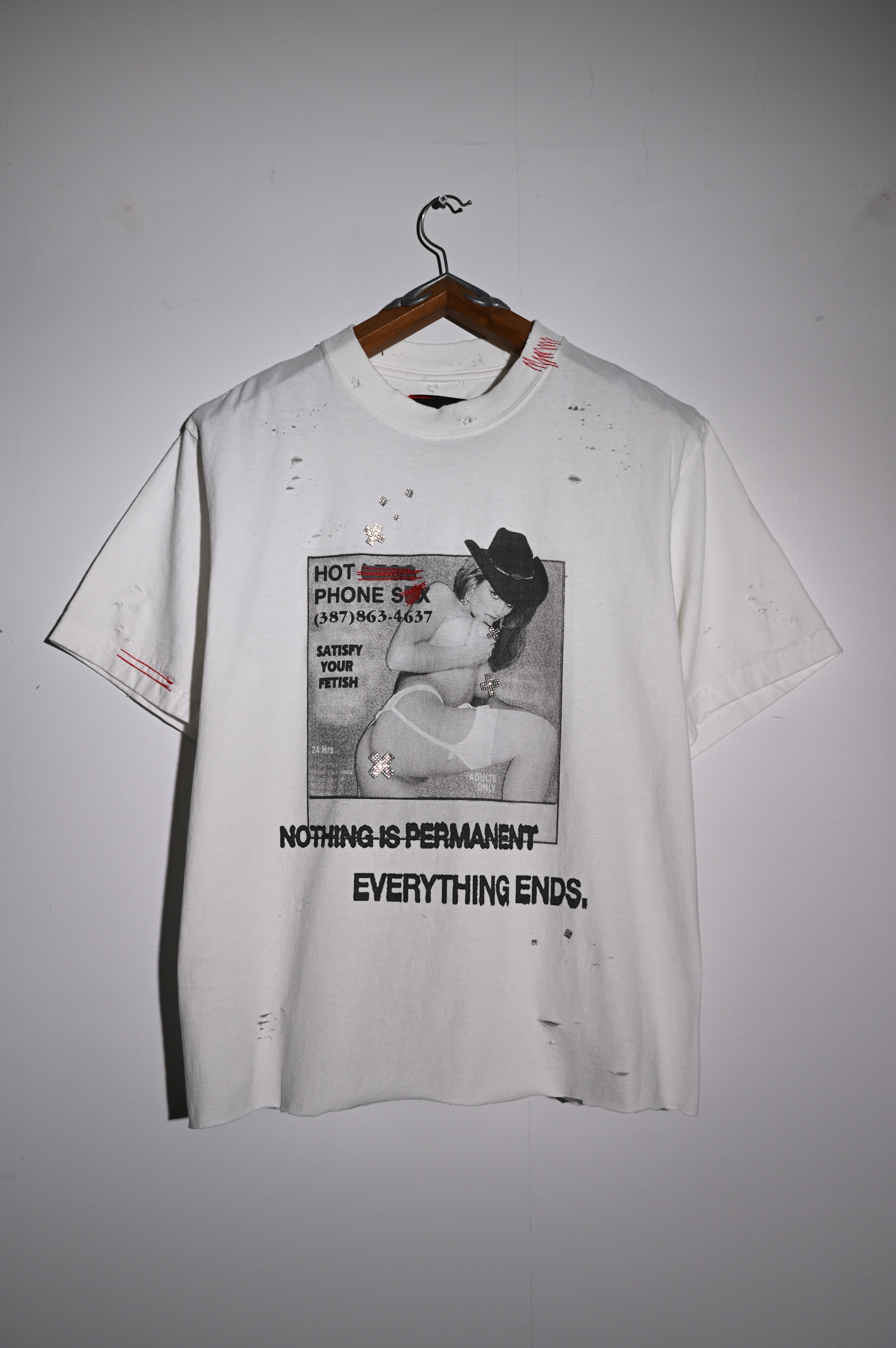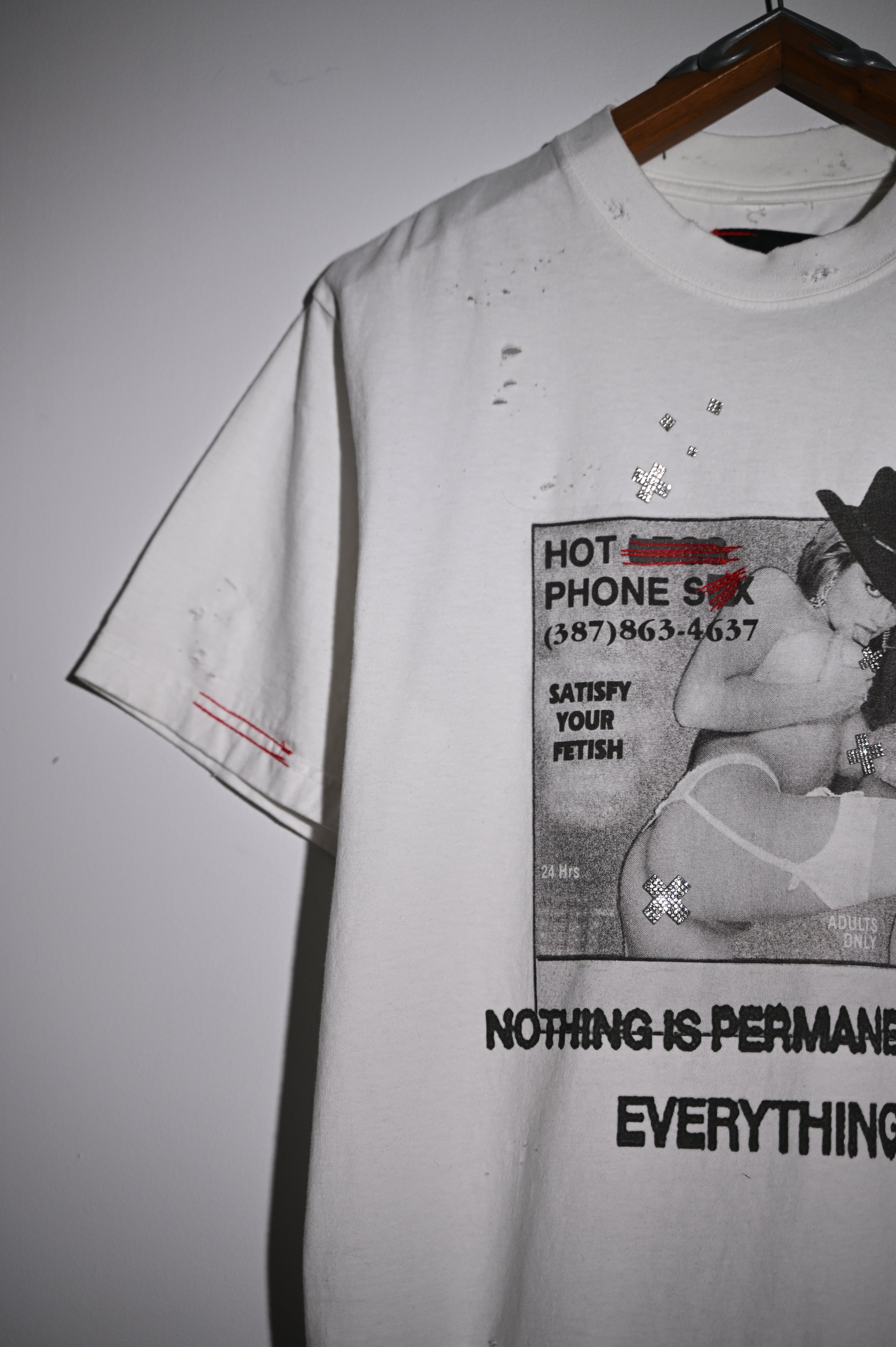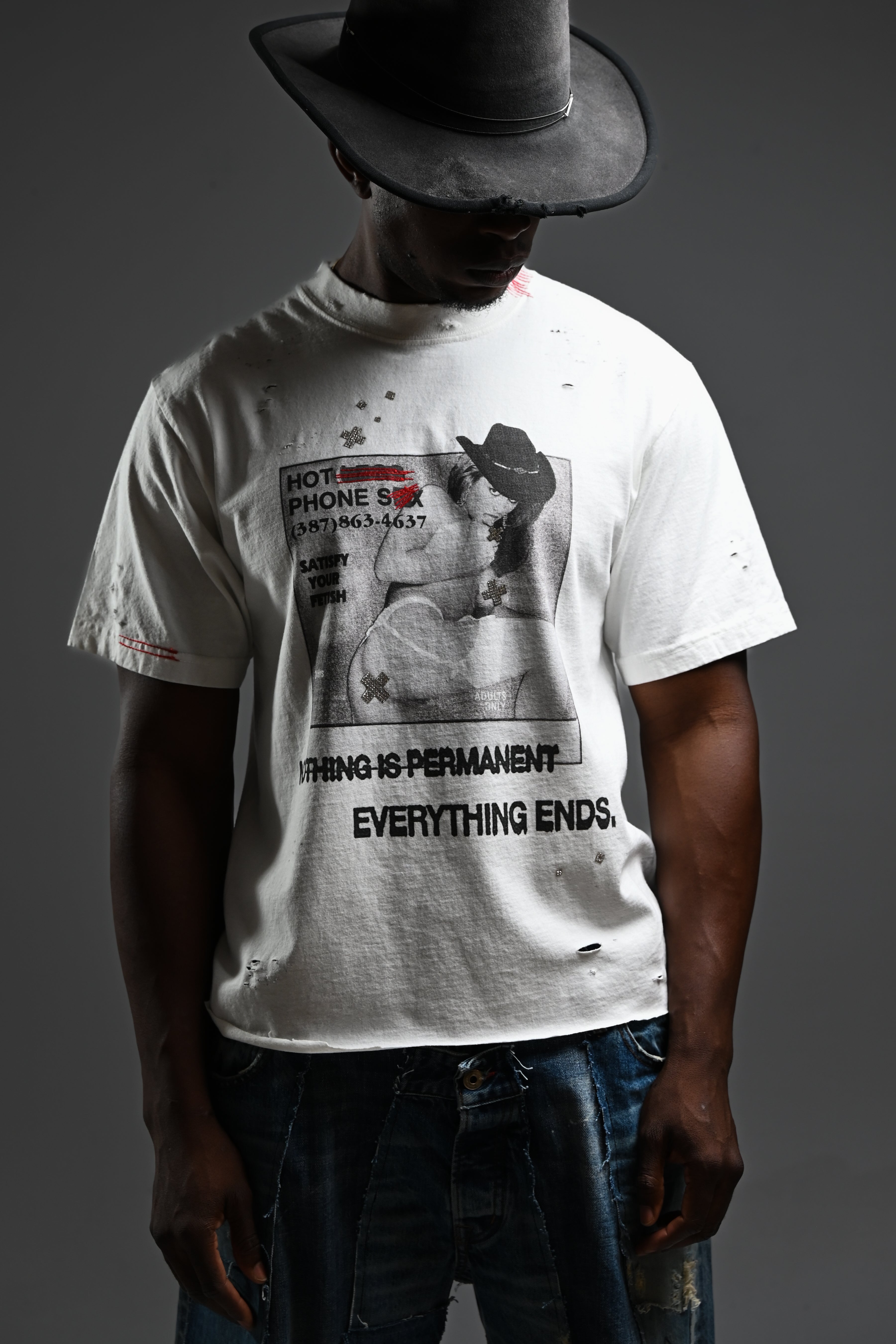 A tee that balances irony and attitude, crafted to disrupt the ordinary. One-of-one, lived-in, defiant.