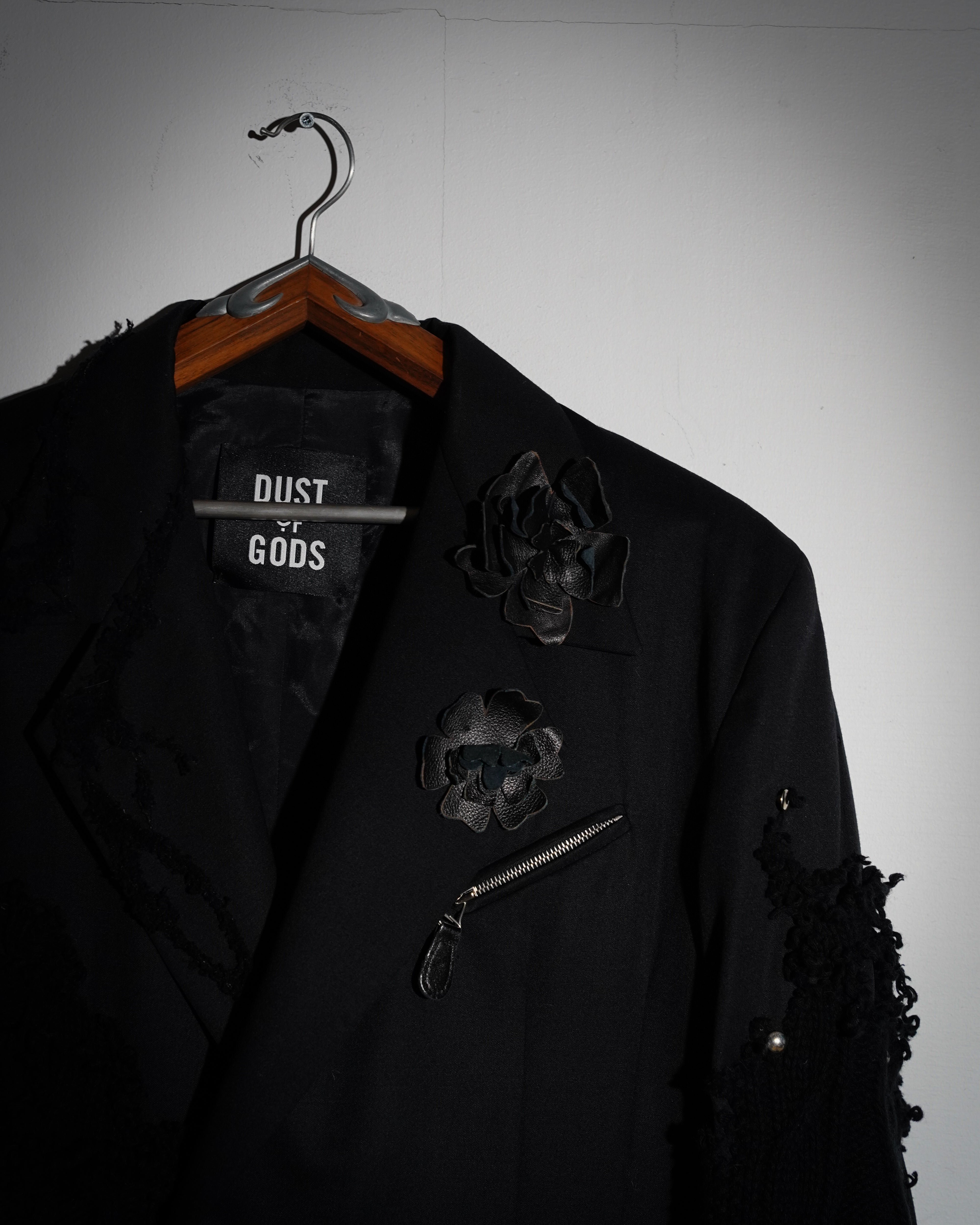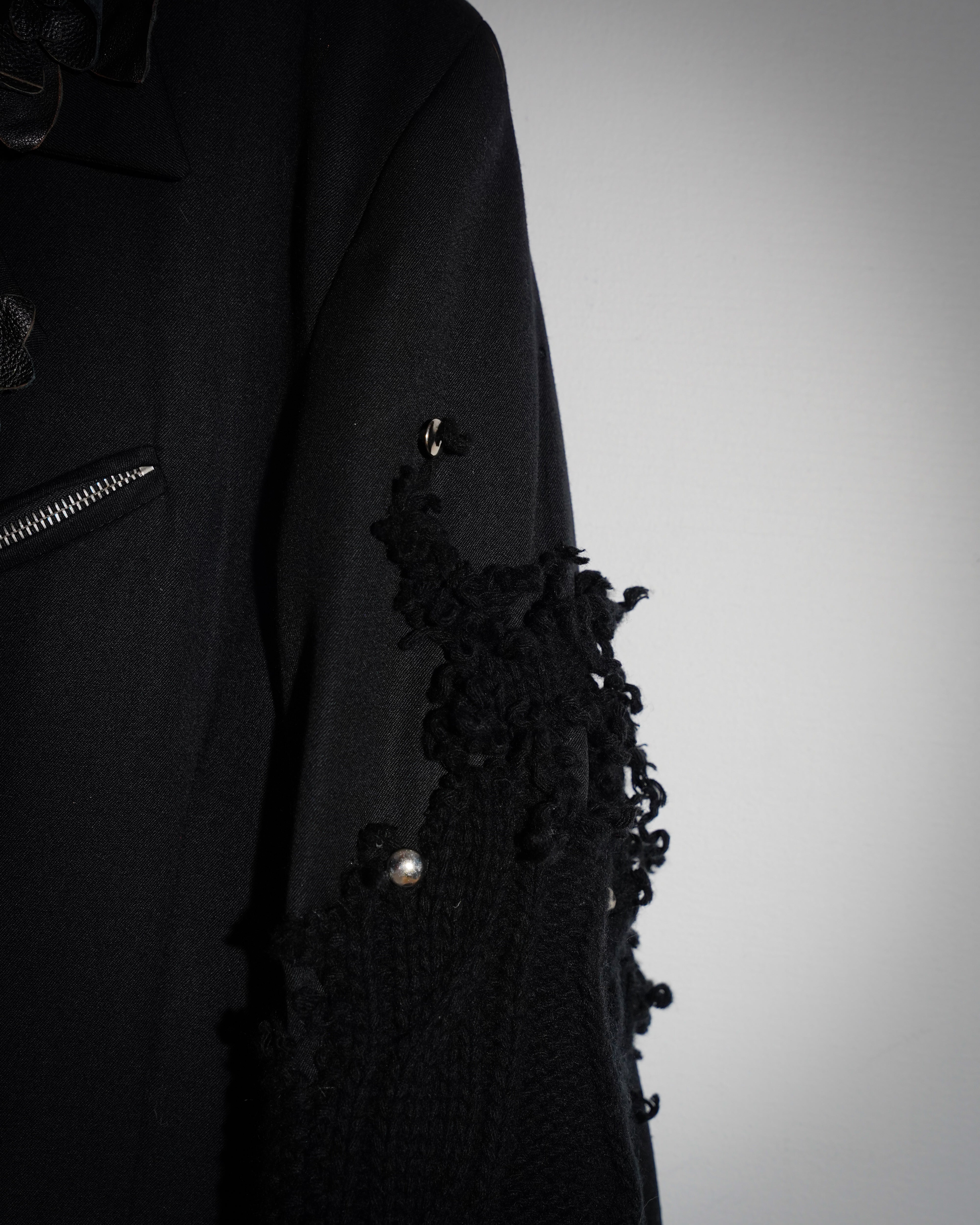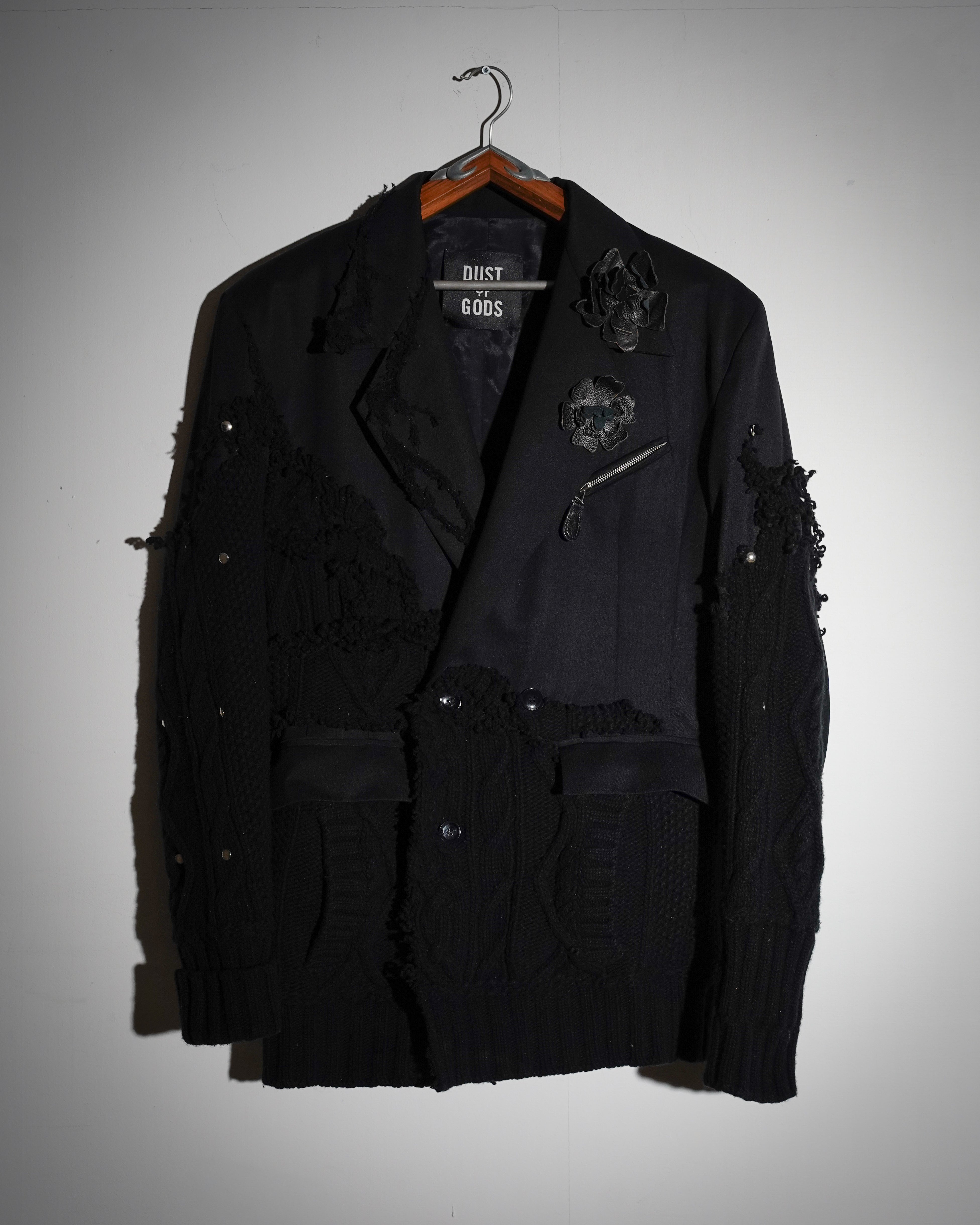 1-OF-1. XL. Black Blazer, Embroidery Details, Floral Details. Knit Deconstruction.