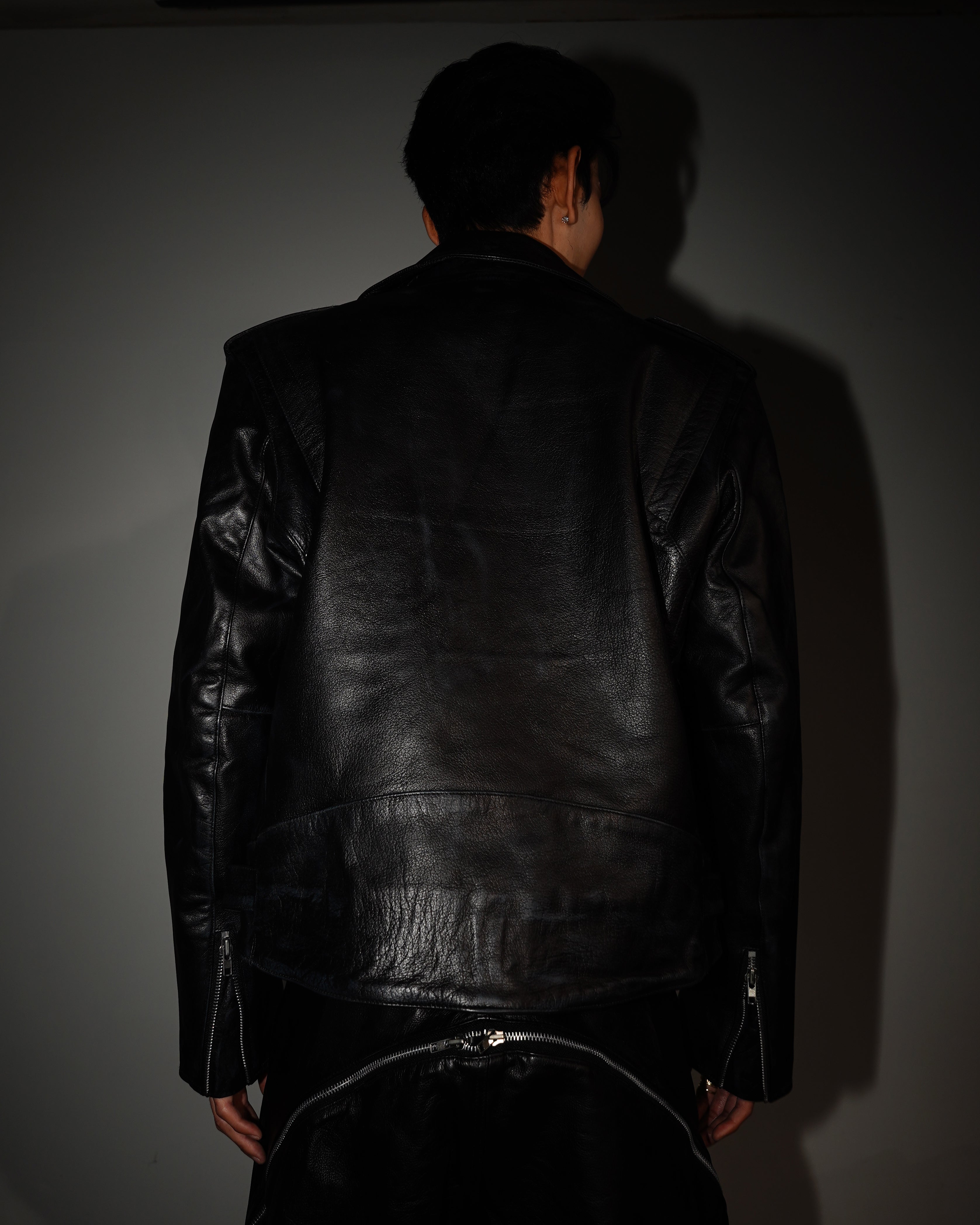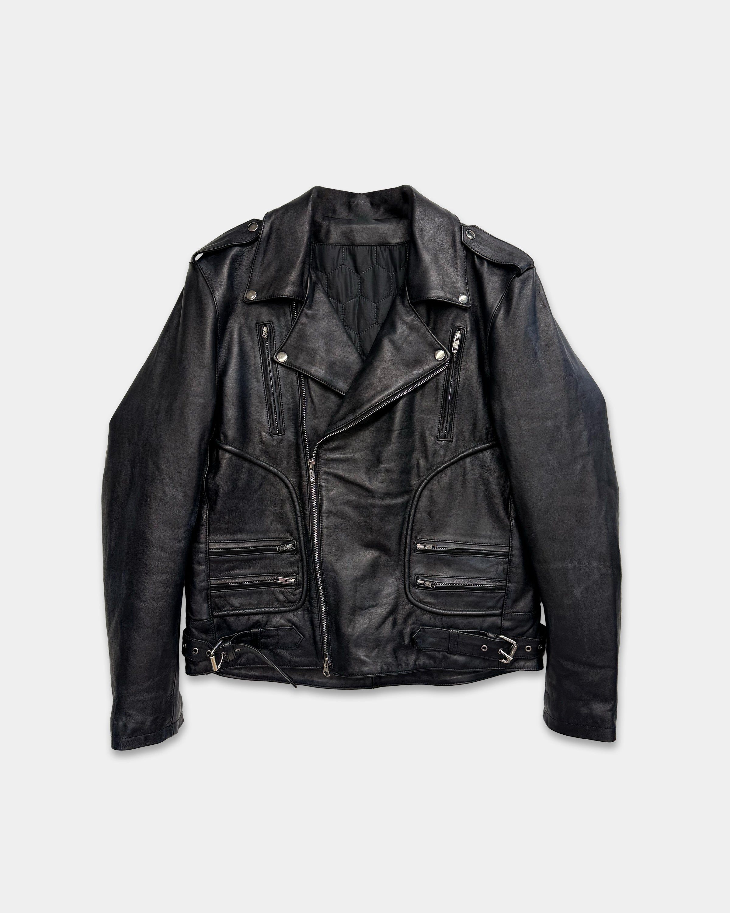 Aged Leather Biker Jacket, Metal Hardware, Lined