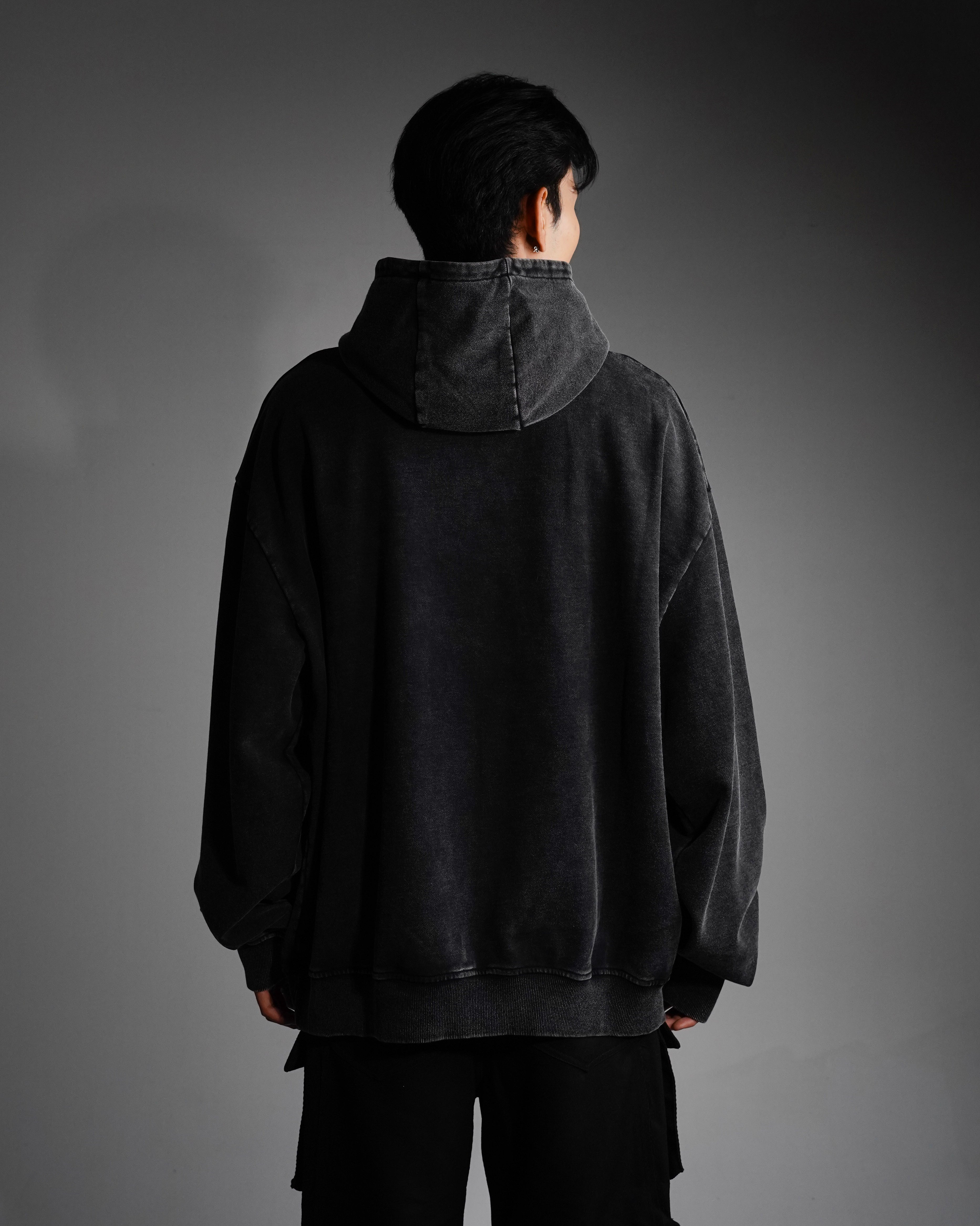This dust of gods classic aged black hoodie is an oversized cotton hoodie featuring a hand-applied Dust of Gods branding on its center. This piece can be customized to tell your own story.