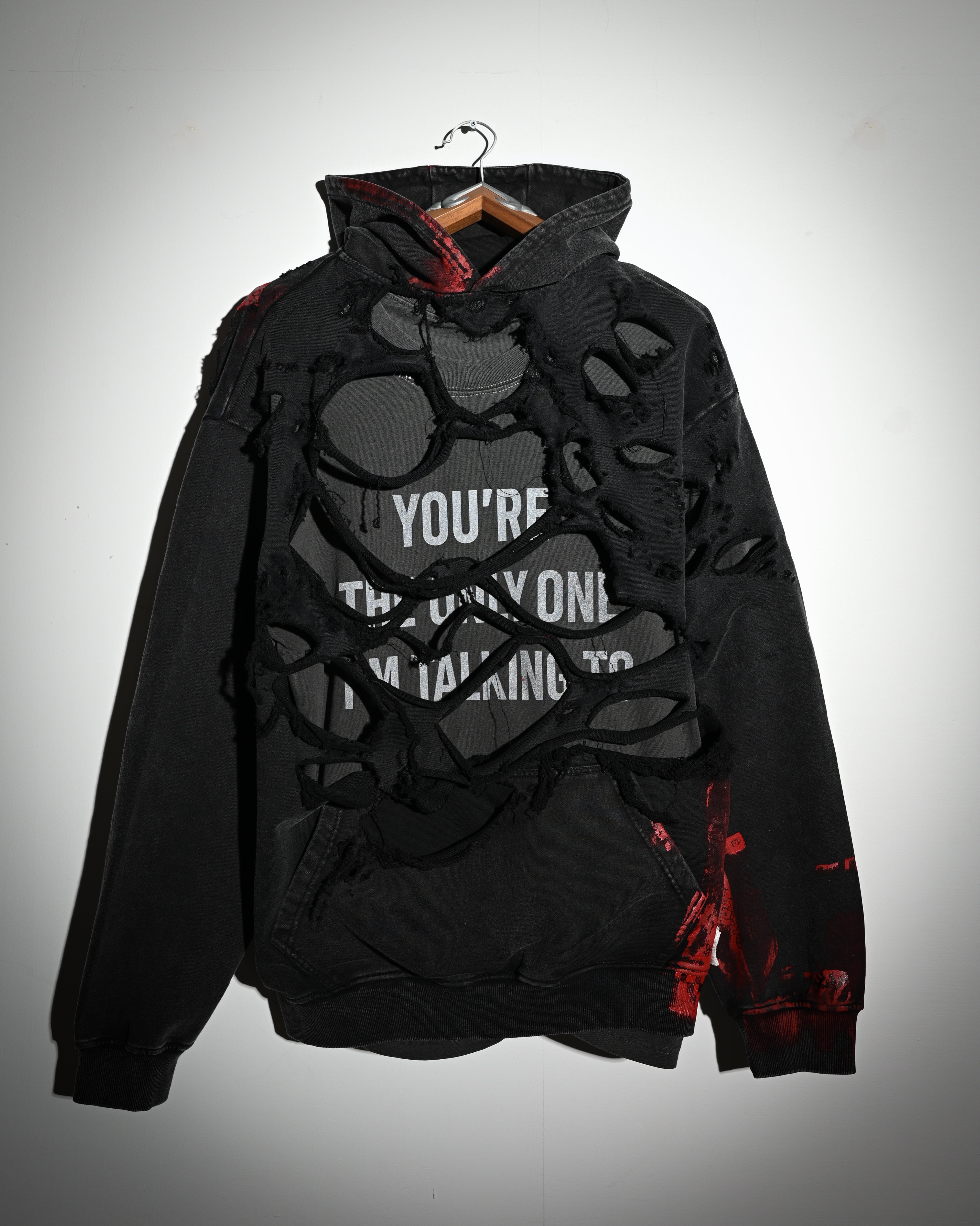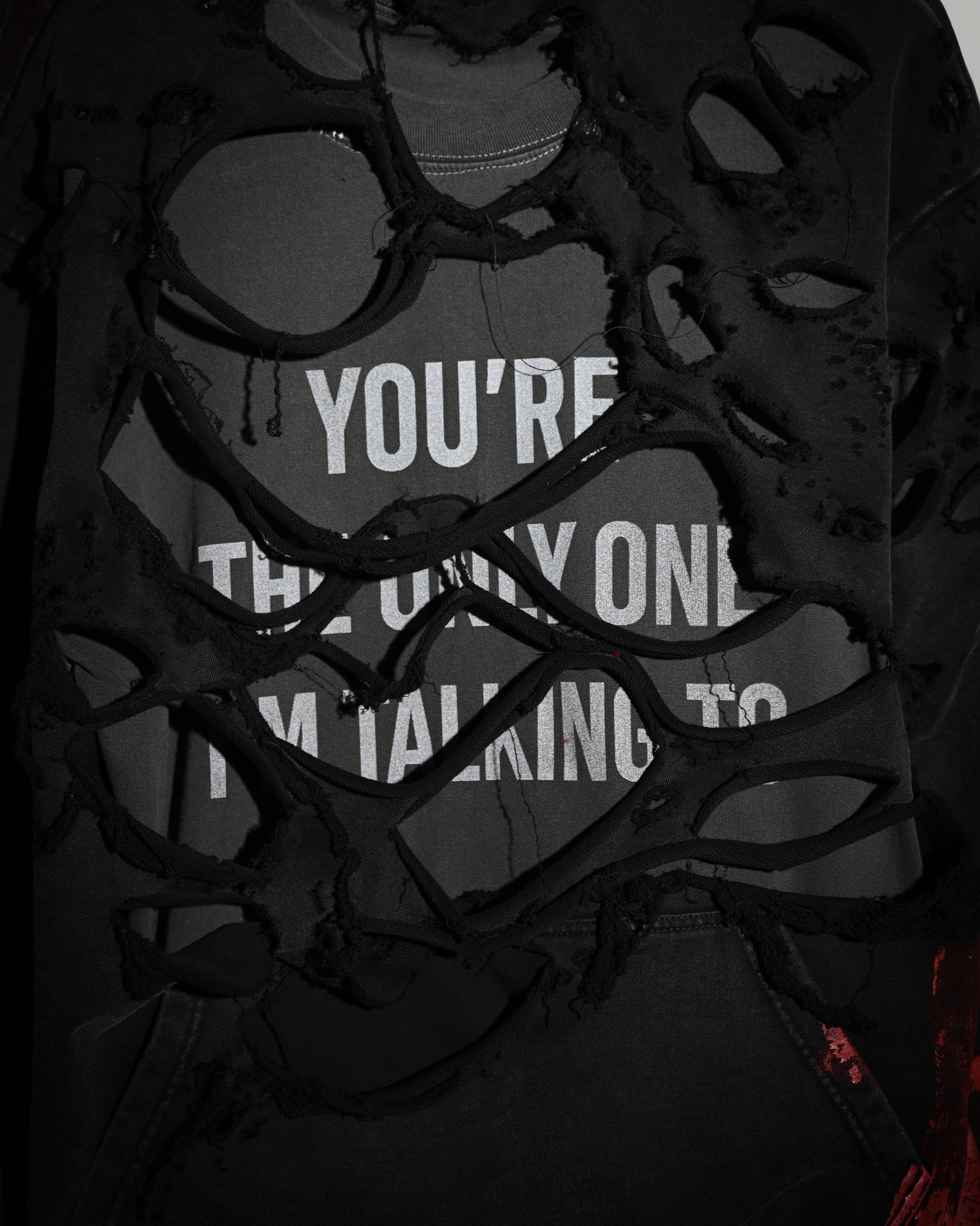 Cut, destroyed, and rebuilt with attitude.Hand-painted, hand-embroidered, and marked with fragments of handwriting.Every imperfection left visible, every layer stitched with...