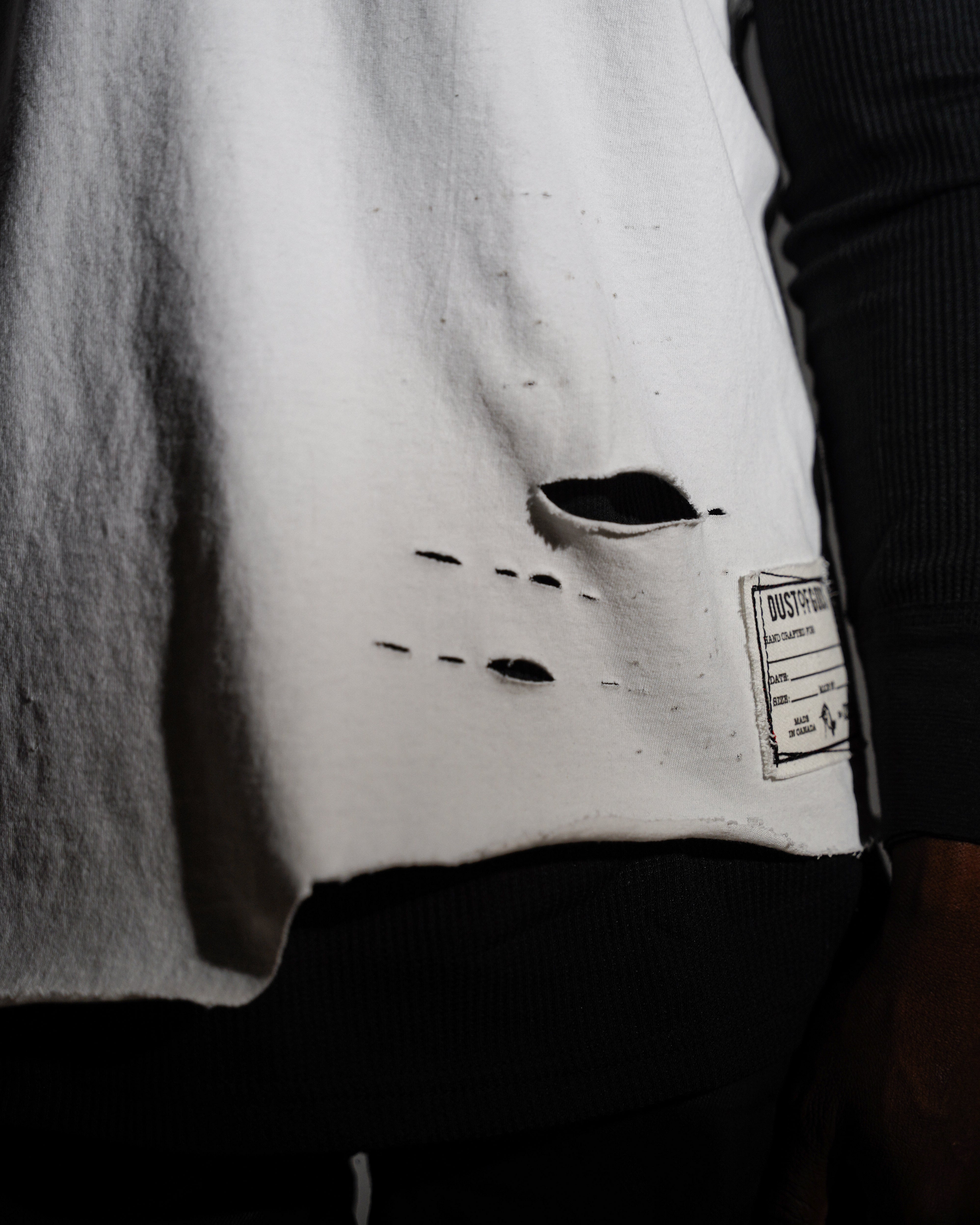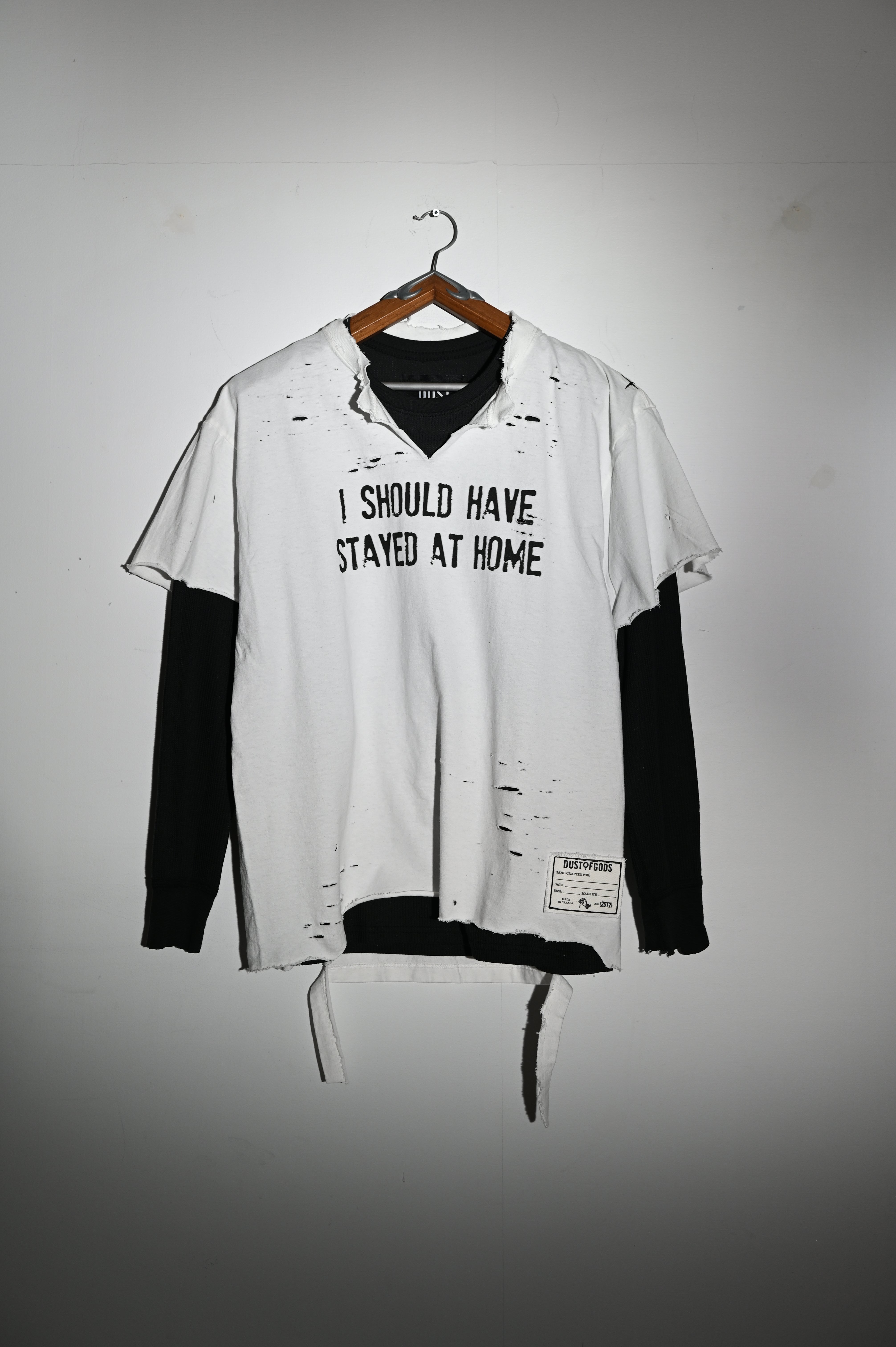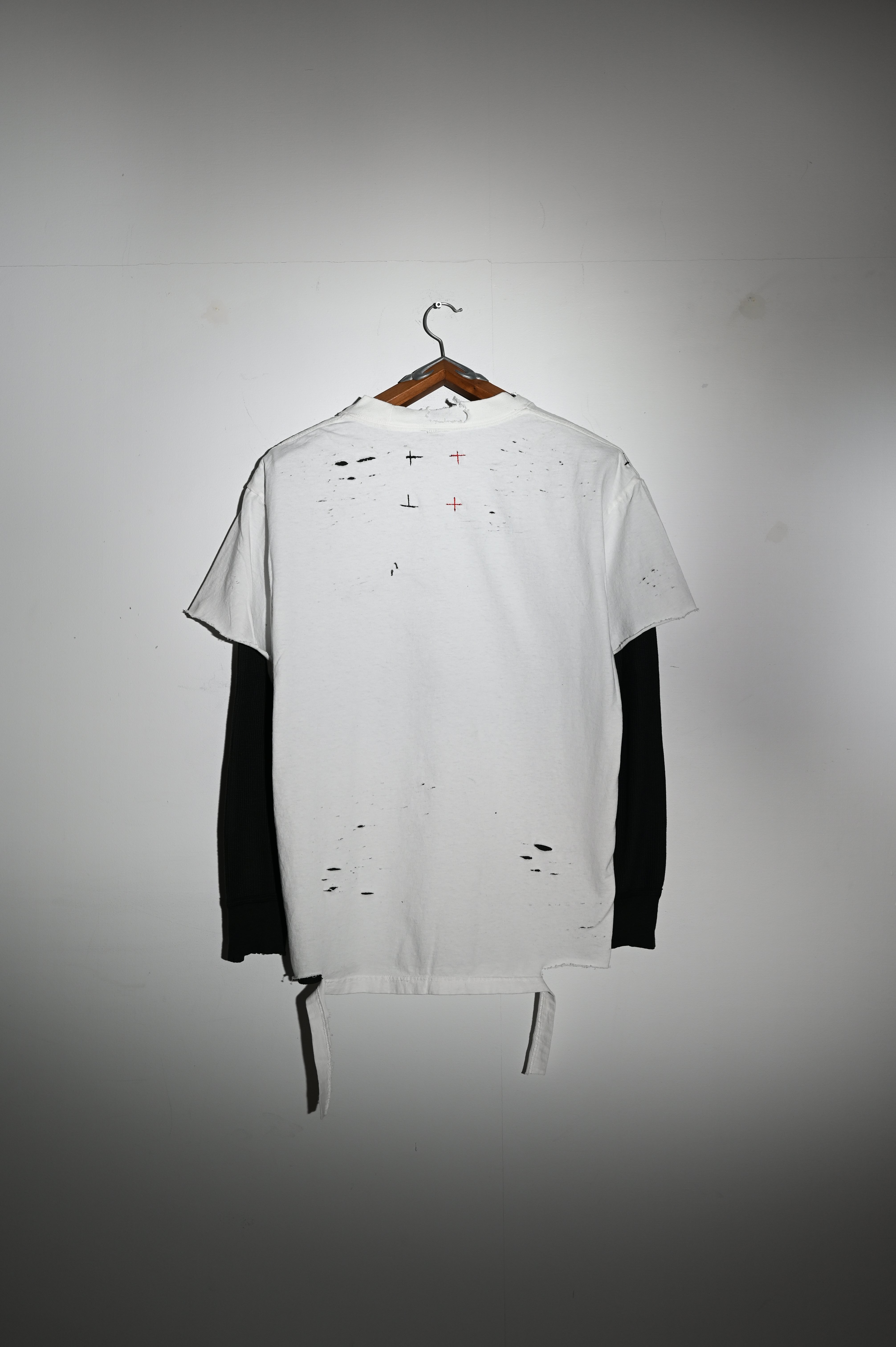 Double Layered T-shirt. Long Sleeve. Distressed. Embroidery Details. Deconstructed Shirt. Metal Embellishments.