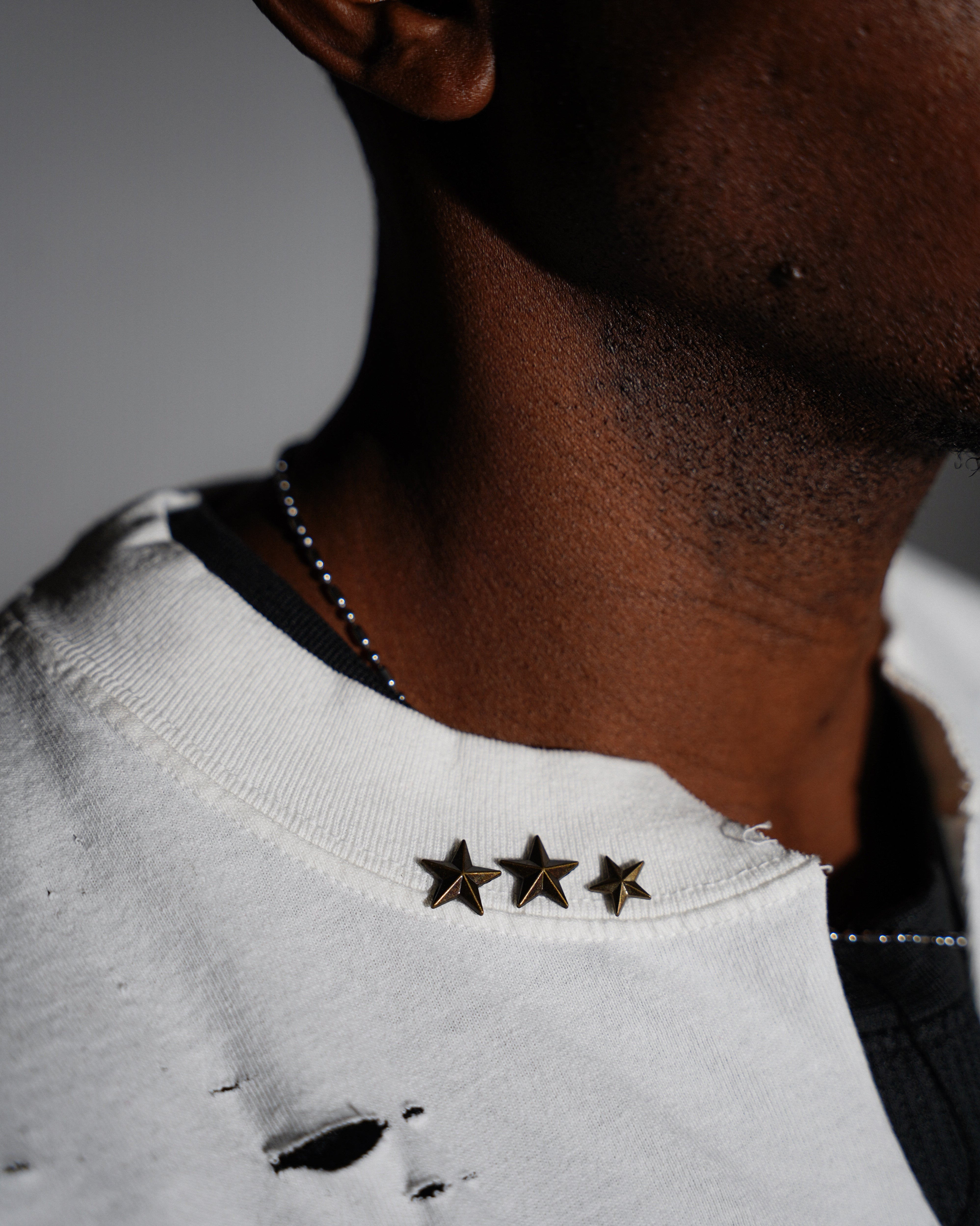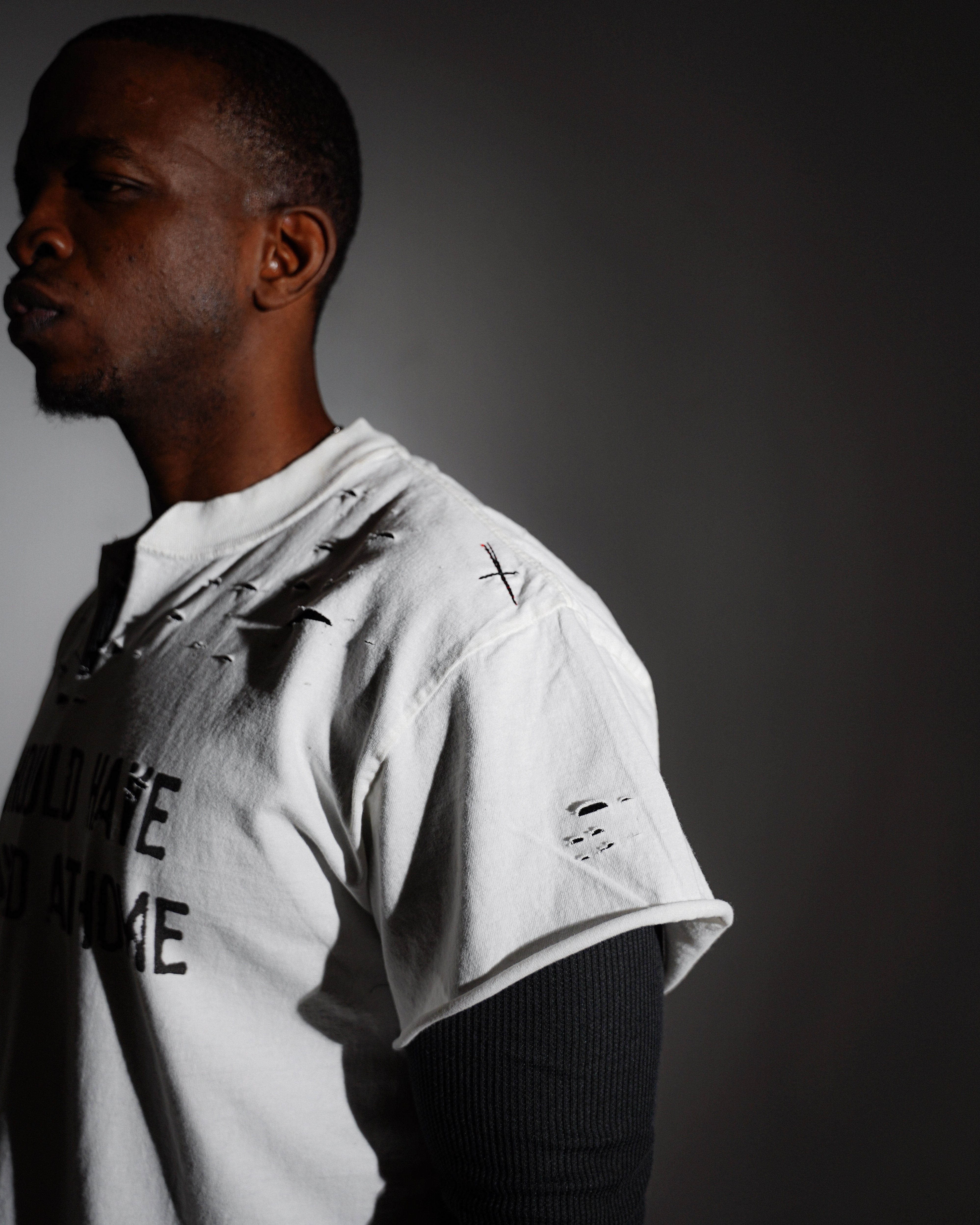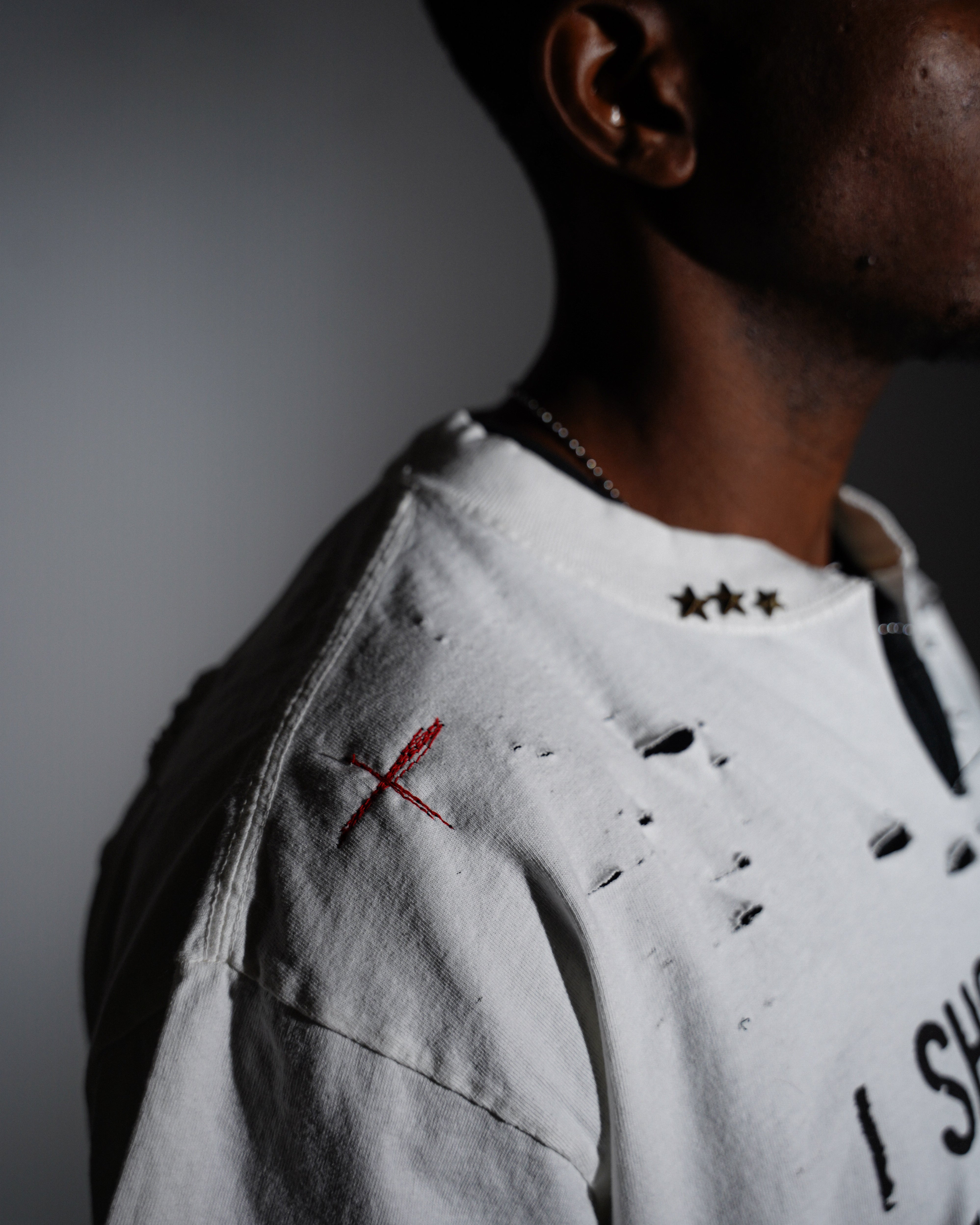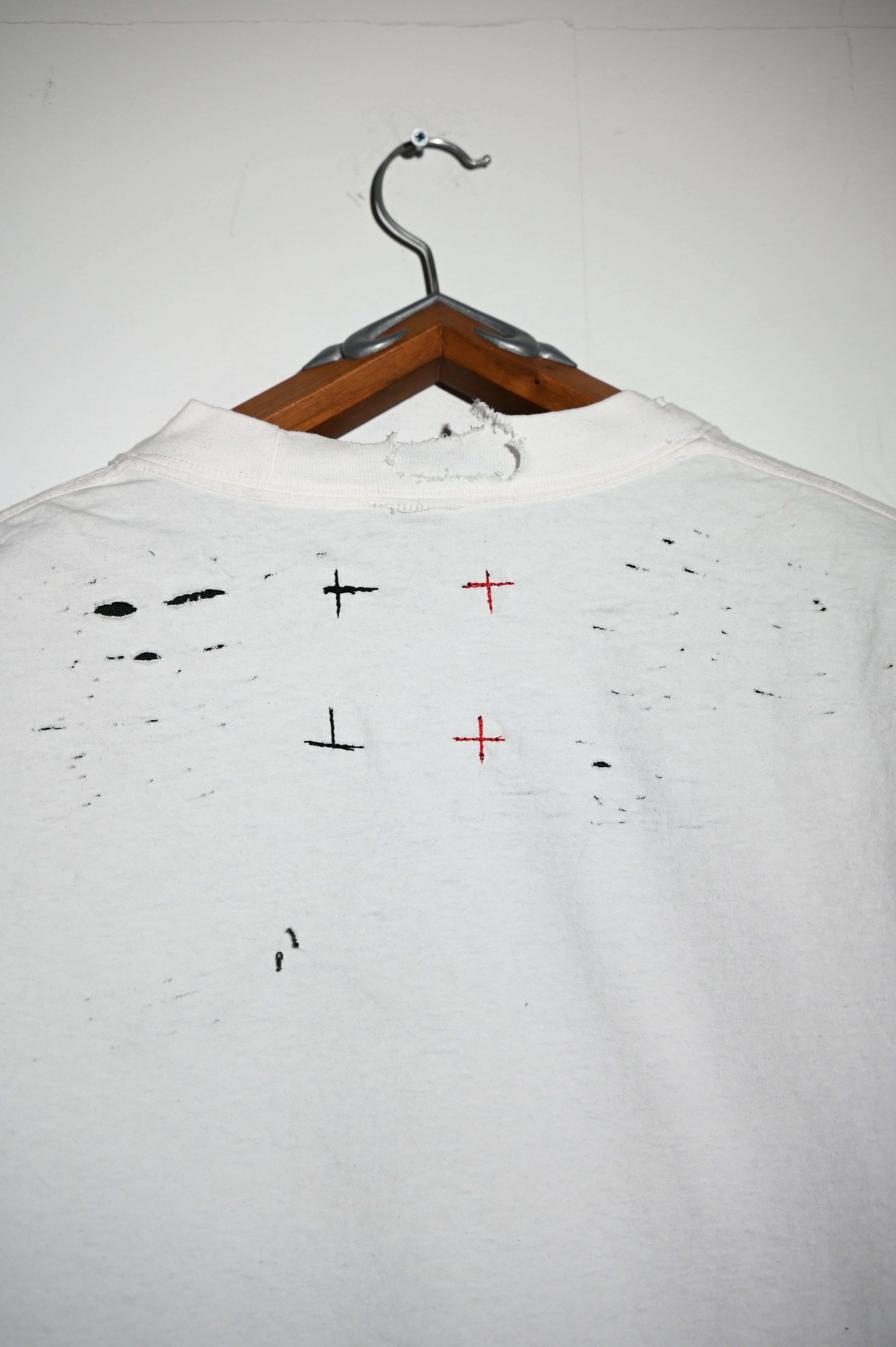 Double Layered T-shirt. Long Sleeve. Distressed. Embroidery Details. Deconstructed Shirt. Metal Embellishments.