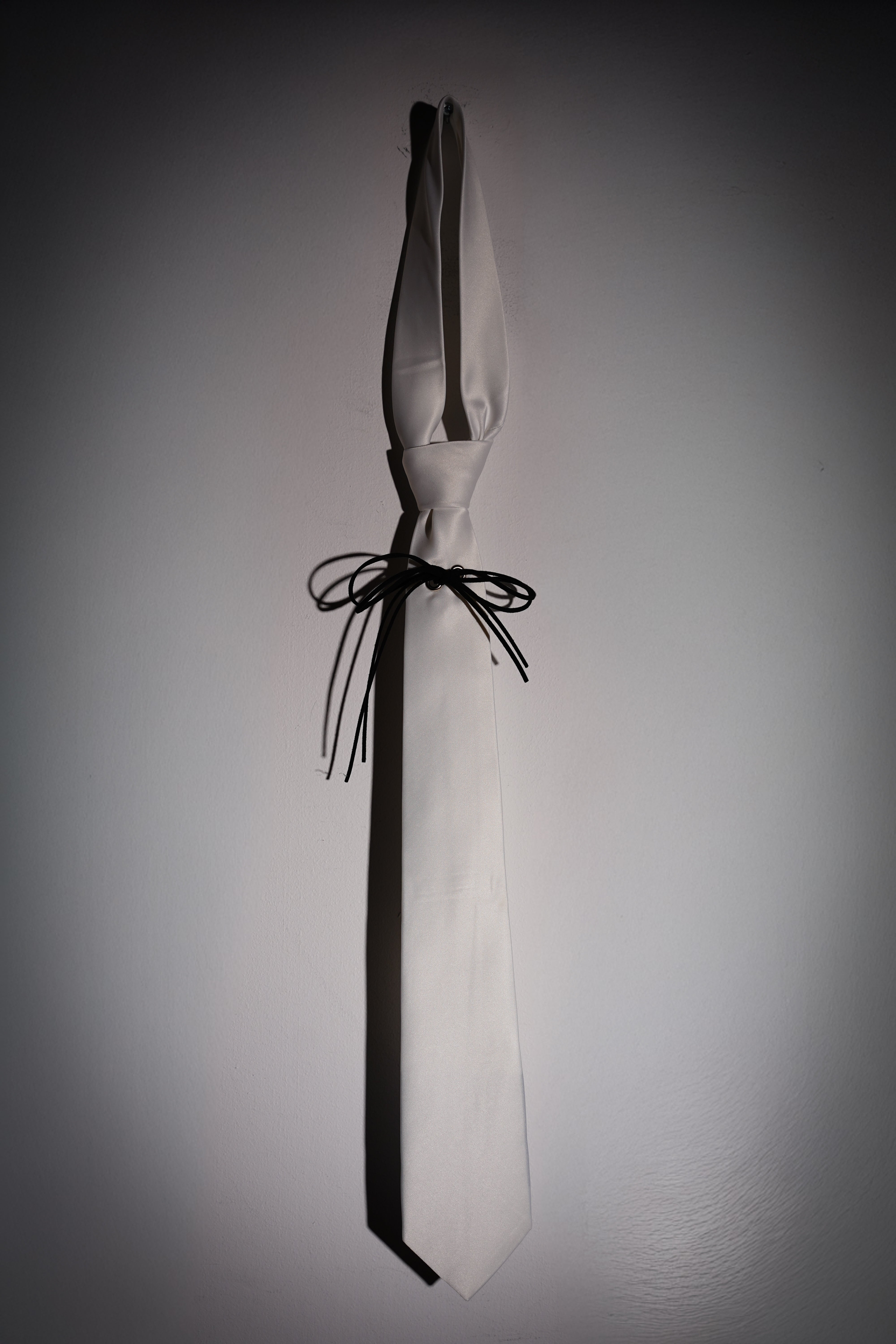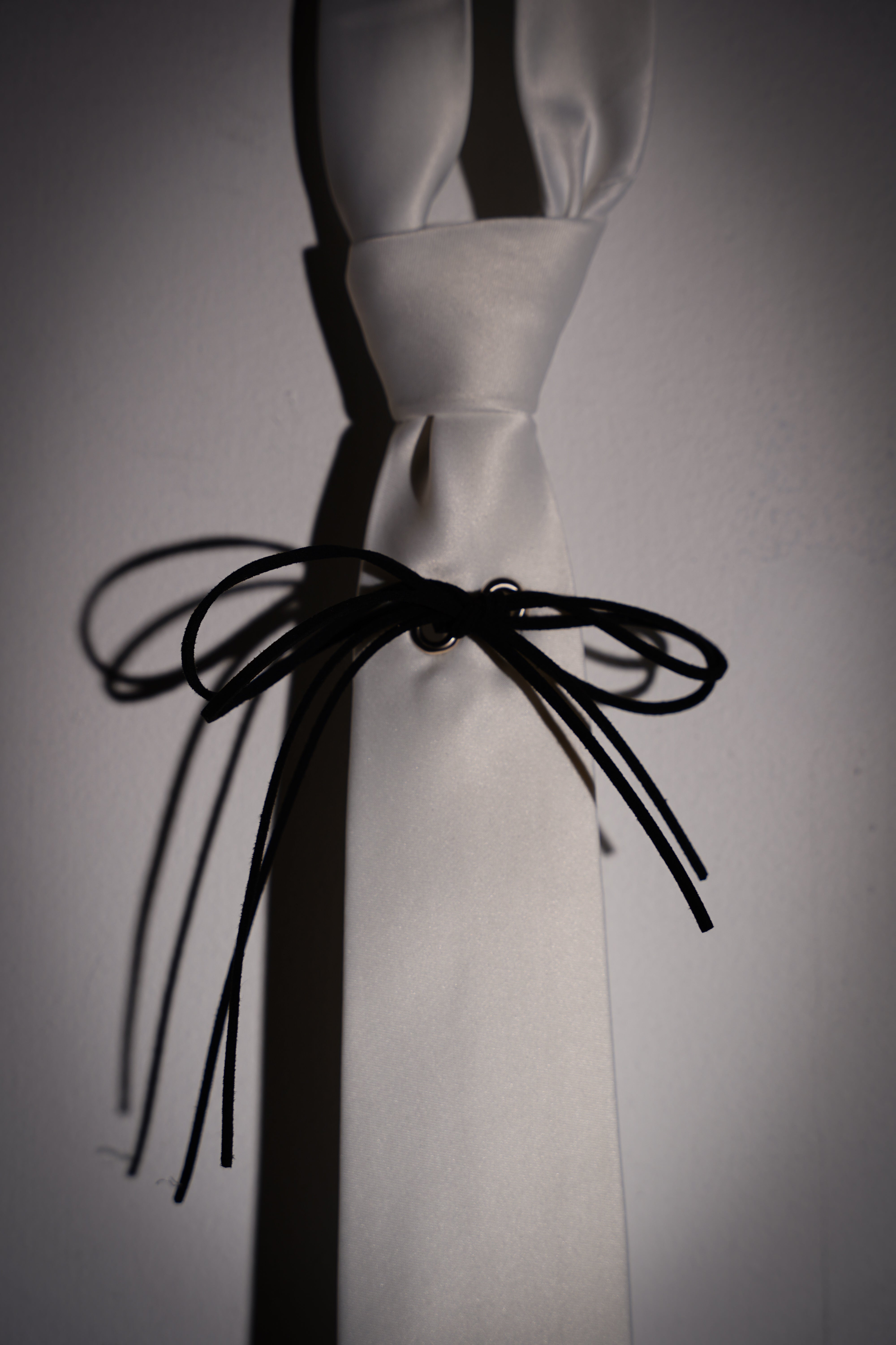 This tie isn't meant to be for everyone. Black Leather Knot Detail. 8cm wide.