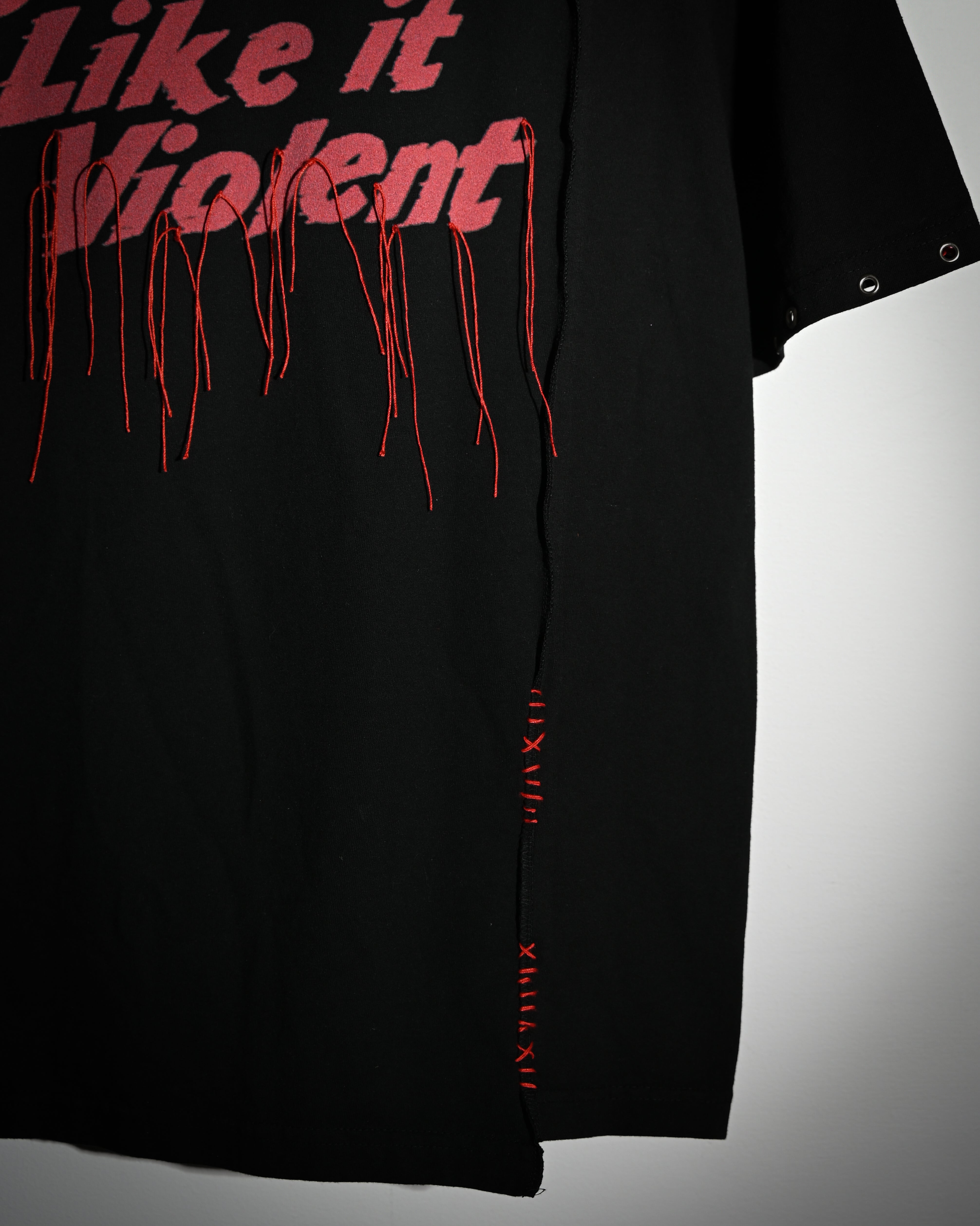 Every piece is made to order, hand-selected and re-imagined through various techniques to provide garments that are unique. Signs of wear, design and imperfections will vary. The garment you will receive will not be an exact replica of the image shown, but a unique piece with references to the original.