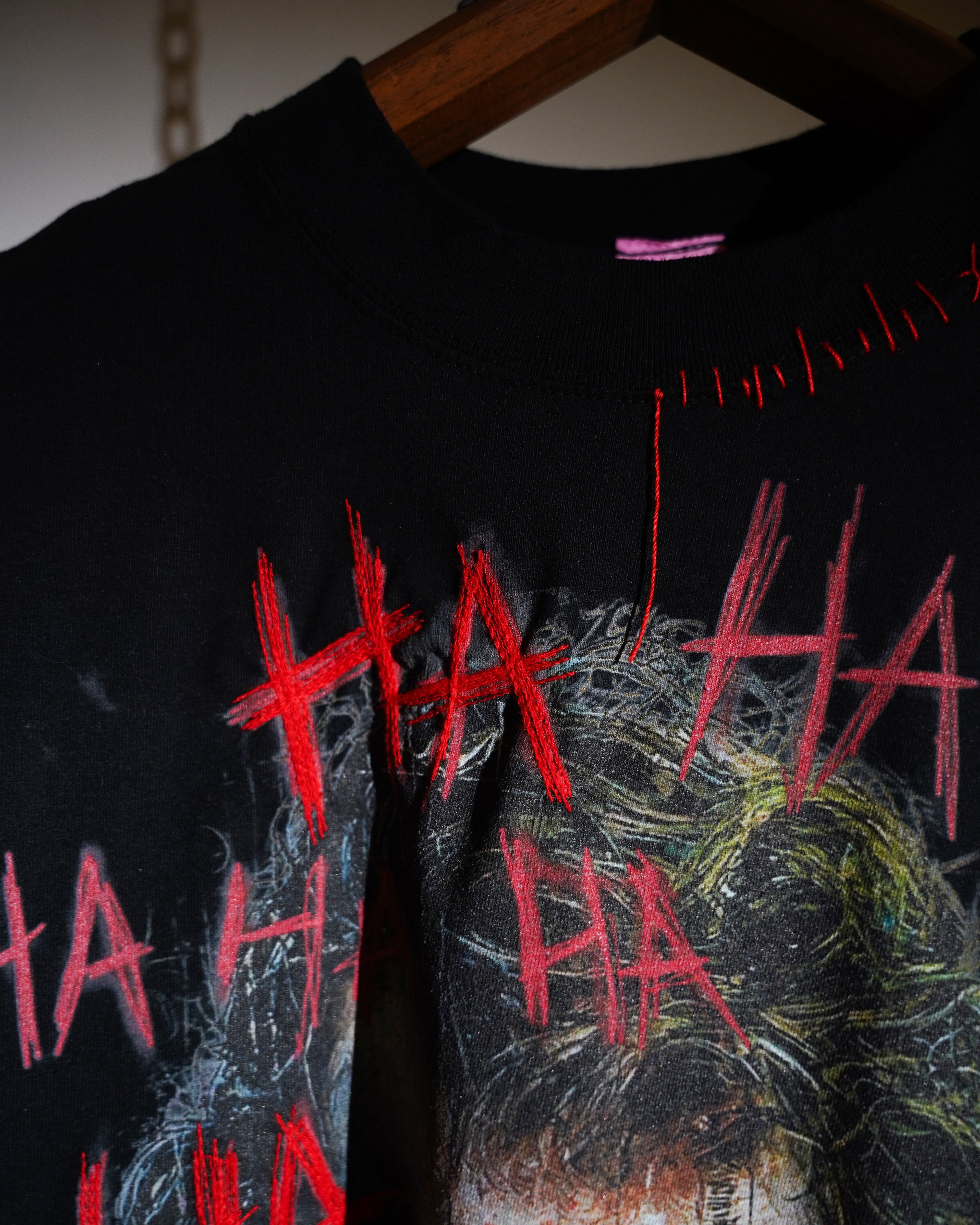 We were tasked to create this for a joker lover.. embroidery details.. raw edges.. and his iconic quote.. Read more Read more
